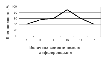 Рис. 2. Зависимость степени достоверности ответа от величины семантического дифференциала
