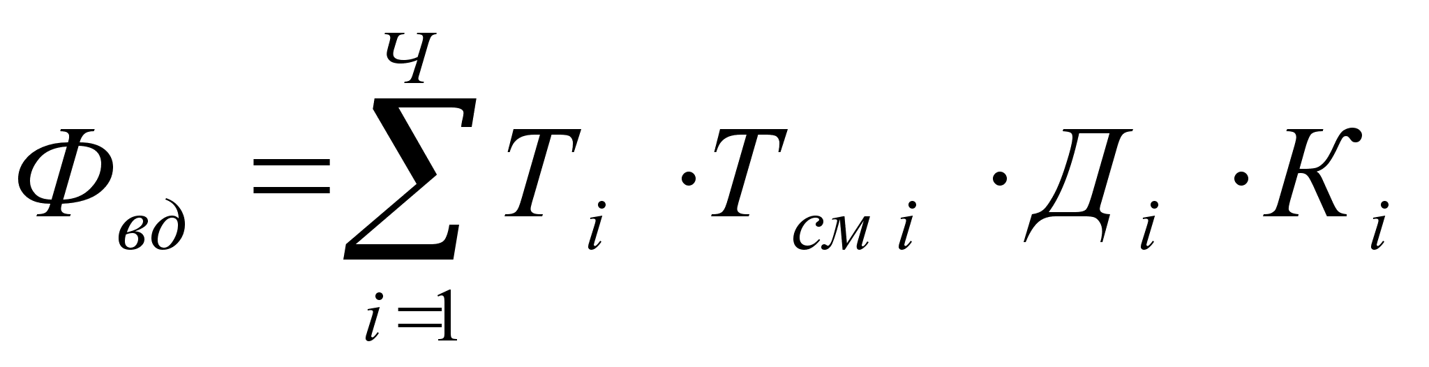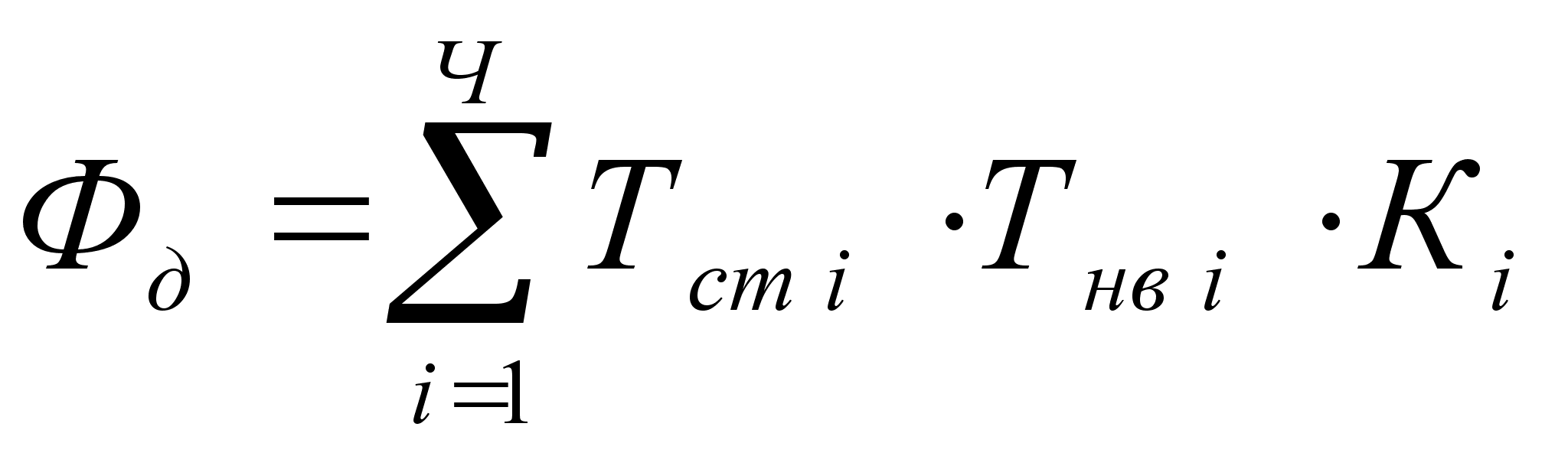 где Фп общ – потенциальный фонд времени общества, ч.; Ч – численность населения, способного участвовать в общественном производстве по группам; Тр – законодательно установленная величина времени работы по группам работников в течение календарного периода. Она представляет собой произведение количества рабочих дней в периоде на установленную продолжительность рабочего дня в часах.