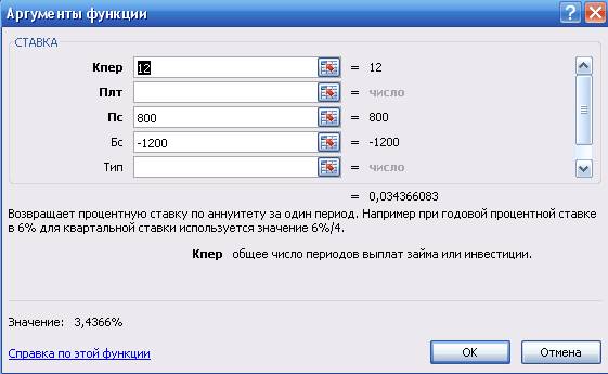 СТАВКА – возвращает процентную ставку по аннуитету за один период.