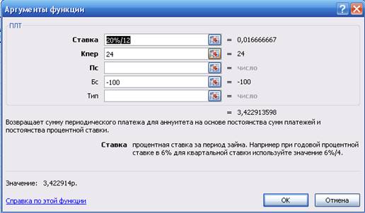 ПЛТ – возвращает сумму периодического платежа для аннуитета на основе постоянства сумм платежей и постоянства процентной ставки.