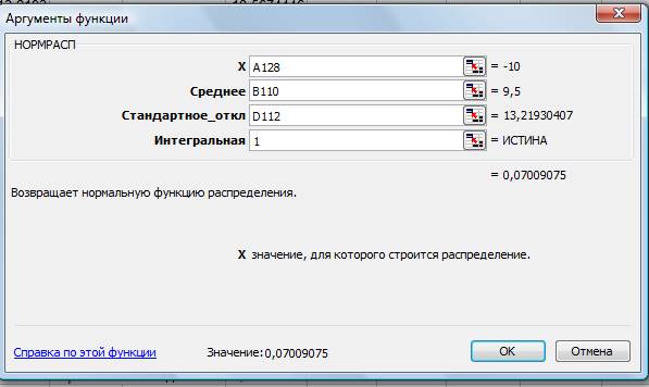 Определим вероятность попадания доходности в интервалы. Используем функцию НОРМРАСП.