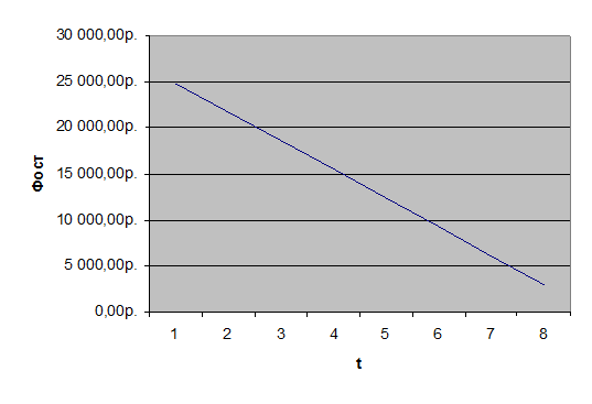 Рисунок 1 - Зависимость балансовой остаточной стоимости от срока эксплуатации при линейном методе начисления амортизации.