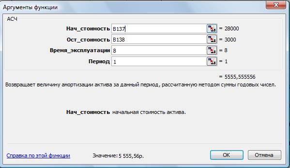 АЧС – возвращает величину амортизации актива за данный период, рассчитанную методом суммы годовых чисел.