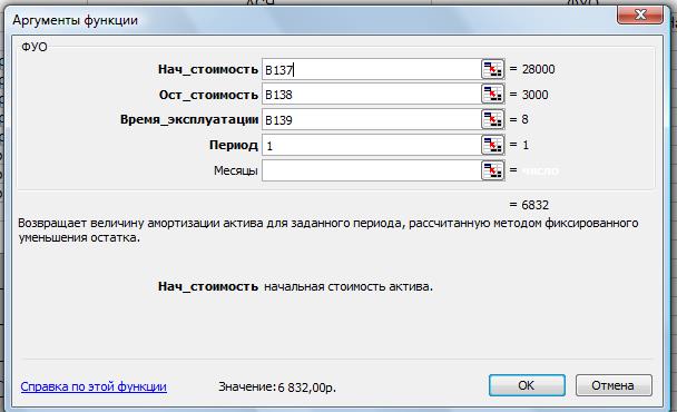 ФУО – возвращает величину амортизации актива для заданного периода, рассчитанную методом фиксированного уменьшения остатка.