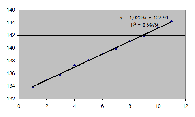 Получаем уравнение регрессии y=1,0239x+132,91. По уравнению находим стоимость квартиры на 12 – 17 месяц (см. таблицу).