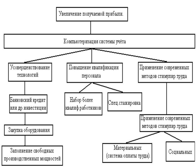 Из полученной схемы видно, что увеличение получаемой прибыли на прямую зависит от качества учетно-отчетной системы. Для улучшения этой системы должны использоваться современные информационные системы и оборудование.
