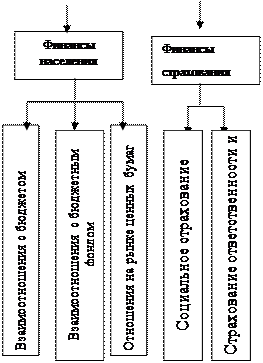 Специфичными, спорными среди других групп финансовых отношений являются страховые отношения. Приводя доводы о необходимости выделения в таком случае фондов, соответствующих отраслям страхования, например «Фонды страхования ответственности», «Фонды страхования предпринимательских рисков», «Фонды социального страхования». Страховые организации, действующие в России, занимаются многими видами страховой деятельности и действуют на коммерческой основе, покрывая свои расходы за счёт получаемых доходов. Они вступают в финансовые взаимоотношения с другими предприятиями, организациями и учреждениями. Эти взаимоотношения реализуются через такое звено финансовой системы как «Финансы хозяйствующих субъектов».
