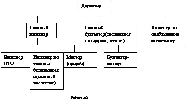 Общая характеристика руководства: директор, главный инженер, главный бухгалтер (специалист по кадрам и юрист), инженер по технике безопасности (главный энергетик), мастер(прораб), инженер по снабжению и маркетингу, инженер производственно-технического обеспечения, бухгалтер-кассир;