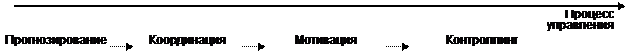 Сложившиеся четыре пары функций (классические плюс современные) можно назвать основными функциями менеджмента. Представим теперь последние на векторе процесса управления (см. схему № 1).