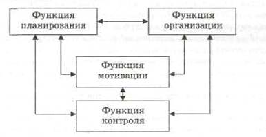 Приведенные функции управления находятся в тесной взаимосвязи: функция планирования взаимодействует с функциями организации и контроля, функция организации, в свою очередь, тесно связана с функциями планирования и контроля, а последняя (то есть функция контроля) взаимосвязана с функцией организации и функцией планирования. Функции планирования, организации и контроля тесно взаимосвязаны с функцией мотивации.