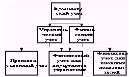 На всех этапах деятельности предприятия к бухгалтерской информации предъявляются такие требования, как объективность, достоверность, своевременность и оперативность. Однако на современном этапе совершенствования управления, становления рыночной экономики к бухгалтерской информации предъявляются повышенные требования. Она должна быть высокого качества и эффективной, должна удовлетворять потребности внешних и внутренних пользователей информации. Это означает, что бухгалтерская информация должна содержать минимальное количество показателей, но удовлетворять максимальное число ее пользователей на разных уровнях управления. Информация должна быть необходимой и целесообразной, исключающей лишние показатели. Кроме того, необходимо, чтобы бухгалтерская информация формировалась с наименьшими затратами труда и времени. Очевидно, что для удовлетворения всех перечисленных выше требований необходимо использовать различные методы сбора, обработки и учета информации. В экономически развитых странах эта проблема решена благодаря делению всей системы бухгалтерского учета на финансовый и управленческий. В общем виде это можно представить в виде следующего рис. 1.