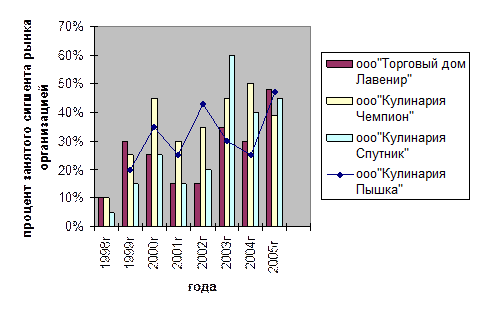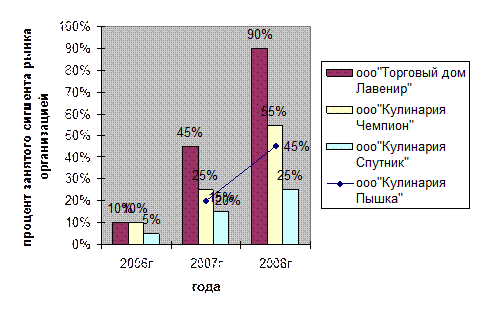Из данных диаграмм можно сделать вывод, что после внедрения в организацию инновационных технологий, организация «Торговый дом Лавенир» занимает лидирующие места на рынке сбыта среди конкурентов Туймазинского района.