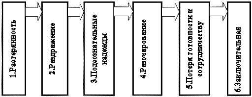 Процесс потери интереса к труду можно рассмотреть как состоящий из шести стадий (Рис.2.1).
