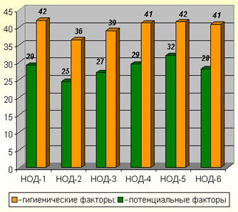 | Рис. 1. Средние значения гигиенических и потенциальных факторов трудовой мотивации командиров среднего звена |