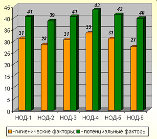 Таким образом, можно считать, что потенциальные факторы важнее для прогноза трудовой мотивации, т.е. они оказывают большее влияние на перспективу. Гигиенические факторы отражают текущий момент и поэтому более изменчивы.
