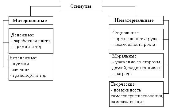 Стимул – более узкое понятие, чем мотив, подразумевающее материальную заинтересованность индивида в результатах своего труда. Соответственно, стимулирование труда, являющееся неотъемлемой частью мотивационного процесса на предприятии, подразумевает, материальные поощрения работникам и реализуется через систему оплаты труда, а также различные бонусы, премии.