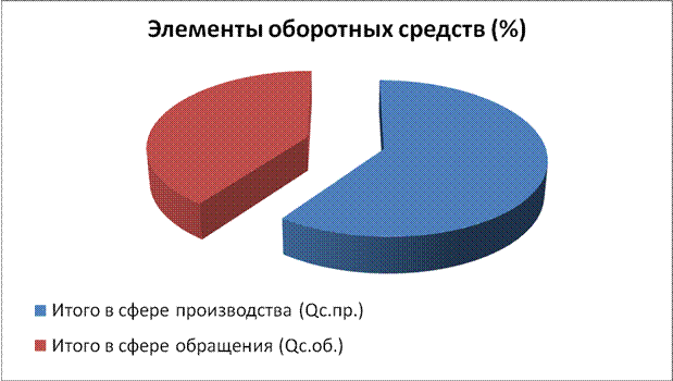 Согласно данным таблицы, удельный вес в сфере производства больше чем удельный вес в сфере обращения на 20,11%, это связано с тем, что производственные запасы предприятия в структуре средств производства занимают значительную долю, это объясняется тем, что руководство предприятия внимательно относиться к обеспечению бесперебойности производственного процесса.