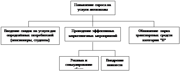 В условиях растущей конкуренции автошкола выбрала стратегию горизонтальной диверсификации (присоединение или создание структур, производящих новые нехарактерные товары). Выбор стратегии был осуществлен после подробного анализа факторов внешней и внутренней среды, с учетом сильных позиций НОУ и его недостатков. После оценки стратегического плана было выявлено, что данная стратегия является лучшим способом применения ресурсов учреждения.