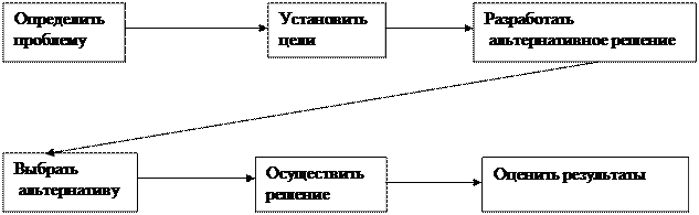 Принятие решения представляет собой сознательный выбор среди имеющихся вариантов или альтернатив направления действий, сокращающих разрыв между настоящим и будущим желаемым состоянием организации. Таким образом, данный процесс включает в себя много различных элементов, но непременно в нем присутствуют такие элементы, как проблемы, цели, альтернативы и решения - как выбор альтернативы. Данный процесс лежит в основе планирования деятельности организации.