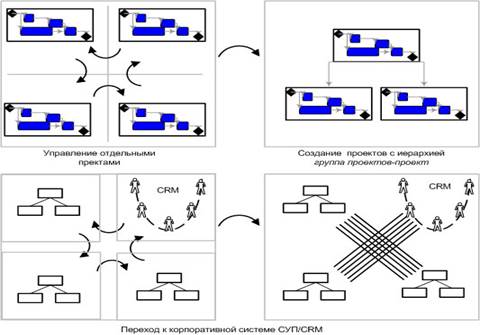 Говоря об интегрированной системе управления проектами предприятия, имеется в виду не только совместное использование инструментальных средств, но и особые формы и технологии управления, позволяющие вписать проектную деятельность в общий контекст деятельности предприятия.