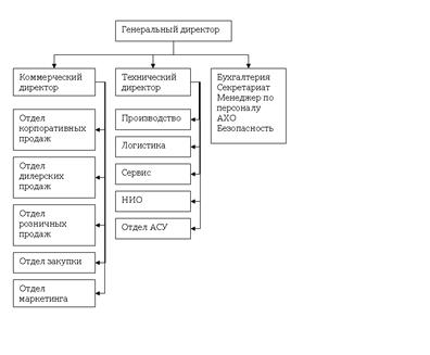 Линейно-функциональная структура управления представляет собой наиболее распространенный вид иерархической структуры. Ее основу составляет принцип построения и специализация управленческого процесса по функциональным подсистемам организации (маркетинг, производство, исследования и разработки, финансы, персонал и пр.). По каждой из них формируется иерархия служб, пронизывающая всю организацию сверху донизу (рис.3).