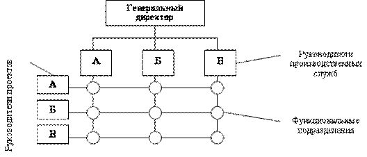 необходимыми полномочиями для осуществления процесса управления в соответствии с запланированными сроками, ресурсами и качеством. При такой организации руководитель проекта взаимодействует с двумя группами подчиненных: с постоянными членами проектной группы и с другими работниками функциональных отделов, которые подчиняются ему временно и по ограниченному кругу вопросов. При этом сохраняется их подчинение непосредственным руководителям подразделений, отделов.