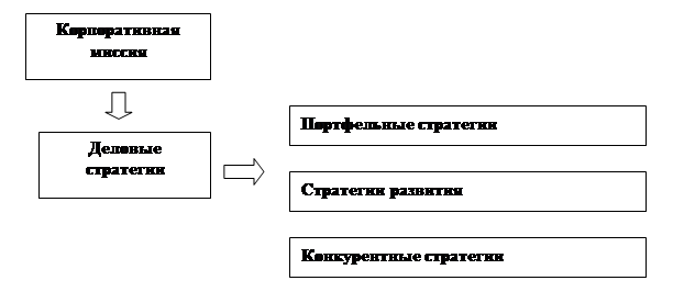 Другой подход позволяет понять структуру и место конкретных стратегий в управлении предприятием. Иерархическая схема корпоративных стратегий компании представлена на рис. 2. [13, с. 117]
