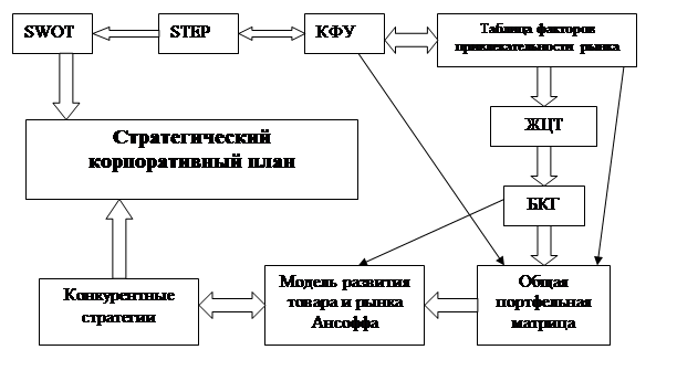 Таким образом, менеджеры должны принять решение об определении набора инструментов стратегического анализа и планирования и создать на этой основе комплексную корпоративную модель стратегического планирования.