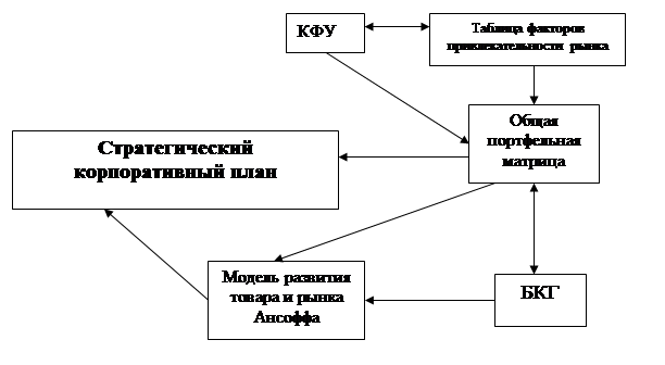 Варианты такой модели могут быть различными. Содержание используемой модели зависит прежде всего, от специфики рынка и величины предприятия. Один из возможных вариантов комплексной корпоративной модели стратегического планирования представлен на рис. 3.