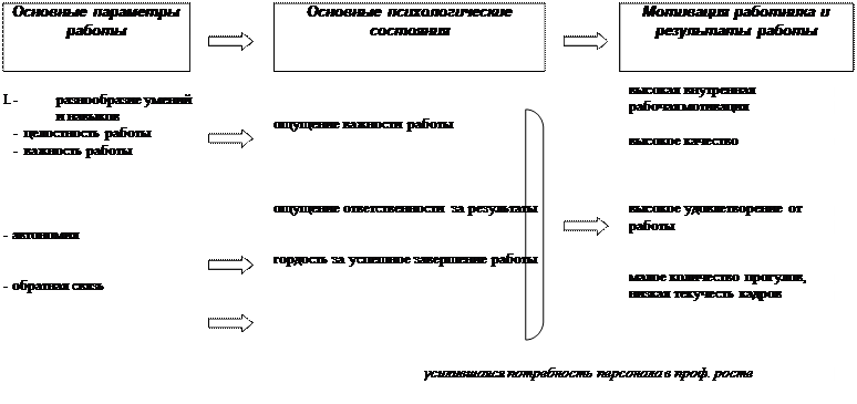 Работа, удовлетворяющая всем описанным факторам внутренне мотивирует работников, обеспечивает хорошее качество выполненного задания, доставляет удовлетворение. Она создает ощущение личного вклада в выпускаемую продукцию или оказываемые услуги, дает работникам чувство сопричастности .