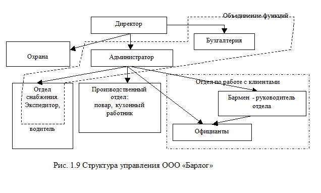 Данная структура управление на наш взгляд боле полно отвечает целям и задачам строительства холдинга его главной цели, а также целям ООО «Алена»: предоставить полноценный отдых людям, имеющим средний достаток и немного выше среднего, при сохранении хорошего уровня рентабельности и прибыльности. При такой структуре управление администратор сможет сосредоточится на приемё клиентов, при необходимости сможет поддержать с ними беседу, создать уютную обстановку, контролировать работу официантов и бармена. В случае отсутствия администратор делегирует свои функции бармену. В дневные часы, когда посетителей в кафе немного, администратор сможет исполнять функции экспедитора. Такая структура управления повысить контроль за работой официантов, позволит лучше их настраивать на вежливое предупредительное отношение с посетителями. При необходимости администратор сможет подстраховать официантов, если при большом наплыве посетителей им потребуется помощь.