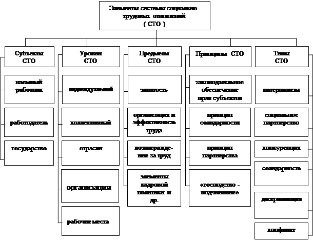 Система социально-трудовых отношений имеет достаточно сложную структуру, которая в условиях рыночной экономики включает следующие элементы (рис. 1.).