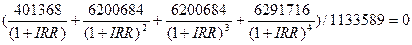 Расчет внутренней нормы доходности выглядит следующим образом: