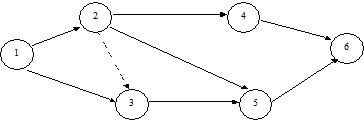 · фіктивна робота, що не вимагає ні витрат часу, ні витрат ресурсів, вона показує логічний зв'язок між роботами.