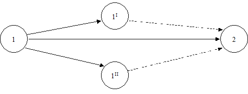 Додаткові події на мал. 4 – 1I й 1II , а фіктивні роботи – (1I – 2) і (1II – 2).