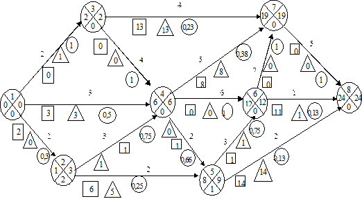 2. Розрахунок часових параметрів подій та робіт сітьової моделі