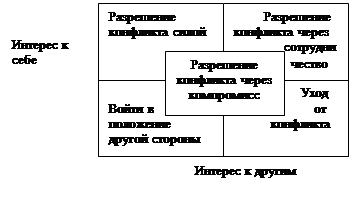 Возможны пять вариантов выхода из межличностных конфликтов, которые могут быть представлены в виде матрицы: