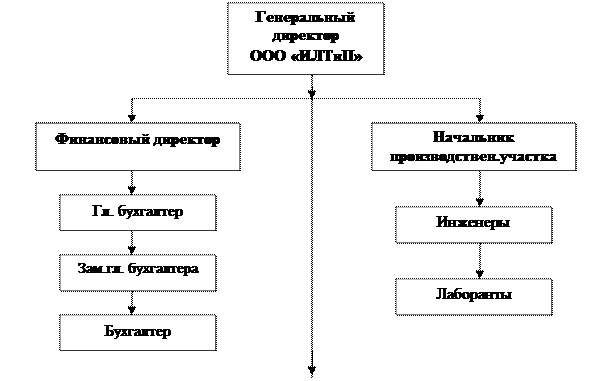 Организационная структура ООО «ИЛТиП» является линейно-функциональной, т.к. включает в себя финансовый отдел, производственный отдел и отделы реализации продукции, в каждом из которых существует линейная структура подчинения.
