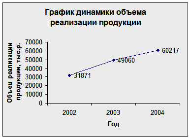 - за 2002 – 2004гг. в деятельности предприятия наблюдается положительная тенденция роста объемов реализации;