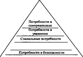 ▲ Большой вклад в развитие школы «человеческих отношений» был сделан в 40—60-е годы, когда учеными-бихевиорис-тами (от англ, behaviour — поведение) было разработано несколько" теорий мотивации. Одной из них является иерархи ческая теория пдтребностей Абрахама Маслоу (1908—1970), который предложил следующую классификацию потребностей личности: