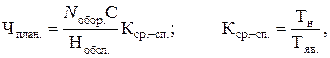 Явочная численность рабочих в смену (Чяв.см. ) определяется на основе норм обслуживания аппаратов (станков, агрегатов) Нобсл. по формуле
