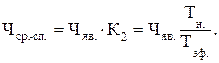 Коэффициент перехода К2 от явочной численности к среднесписочной