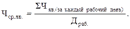 Средняя явочная численность Чср.яв. – отношение суммарной численности работников, являвшихся на работу каждый рабочий день рассматриваемого периода, на число рабочих дней Драб. данного периода – определяется по формуле