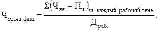 Средняя явочная фактическая численность Чср.факт. определяется делением суммарного числа работников, явившихся на работу без целодневных простоев, на число рабочих дней периода и определяется по формуле