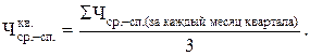 Квартальная среднесписочная численность определяется суммированием числа работников за все месяцы квартала с последующим делением суммы на 3 :