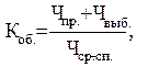 где Чпр. – число принятых работников; Чвыб. – число выбывших работников (уволенных по собственному желанию, за нарушение дисциплины, в связи с уходом на пенсию, поступлением в вузы, призывом в армию); в число выбывших не входят работники, переведённые на другие должности, т.к. они остались в КО.