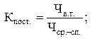 Движение персонала характеризуют коэффициенты: восполнения, текучести, замещения (сменяемости), постоянства (стабильности), потери в численности ∆Ч в результате текучести кадров, которые определяются по следующим формулам: