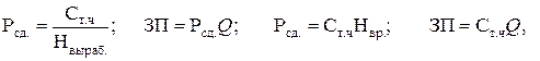 где Рсд. – сдельная расценка за изготовление единицы продукции, руб./ед.; Ст.ч. – тарифная часовая ставка разряда выполняемой работы, руб.; Нвыраб. – часовая норма выработки, шт./ч; ЗП– заработная плата, руб.; Q – количество продукции, шт.; Нвр. – норма времени на изготовление единицы продукции, мин, ч.