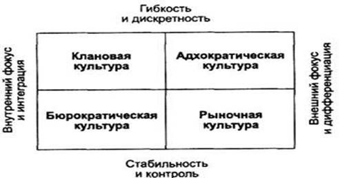 Так как типологий организационной культуры существует великое множество, поэтому остановимся на наиболее распространенных. Одна из самых популярных типологий предложена К. Камероном и Р. Куинном [10]. В ее основу положены четыре группы критериев, определяющих стержневые ценности организации: