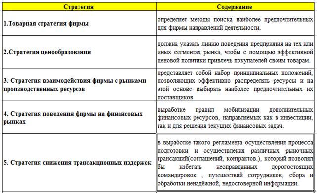 1.Товарная стратегия фирмы – определяет методы поиска наиболее предпочтительных для фирмы направлений деятельности.